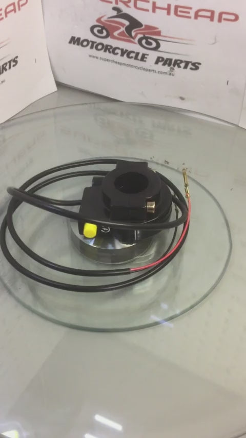Throttle, I060-020, With Kill Switch, for standard 22mm Bars, Pit Bikes, ATVs, it has a 10mm thread to retain the throttle cable in place. It also has a locating pin that locates in the handlebars.